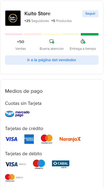 "Sabemos que la confianza es lo más importante al comprar en línea. Por eso, queremos que sepas que también puedes encontrarnos en Mercado Libre, Nuestra presencia en una plataforma tan reconocida demuestra nuestro compromiso con un servicio de calidad y la autenticidad de nuestros productos. Compra con total tranquilidad en nuestra web, sabiendo que somos un vendedor verificado con una trayectoria comprobada."